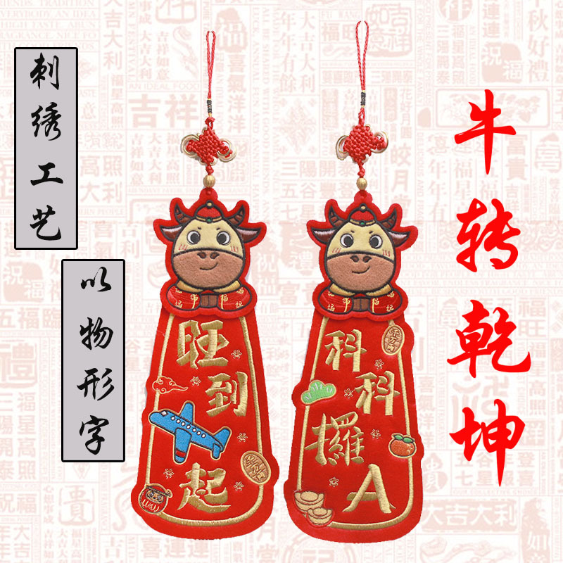 2021年新年装饰春节对联立体牛年绒布春联卡通刺绣挥春角落生。。热门设计联盟服务商