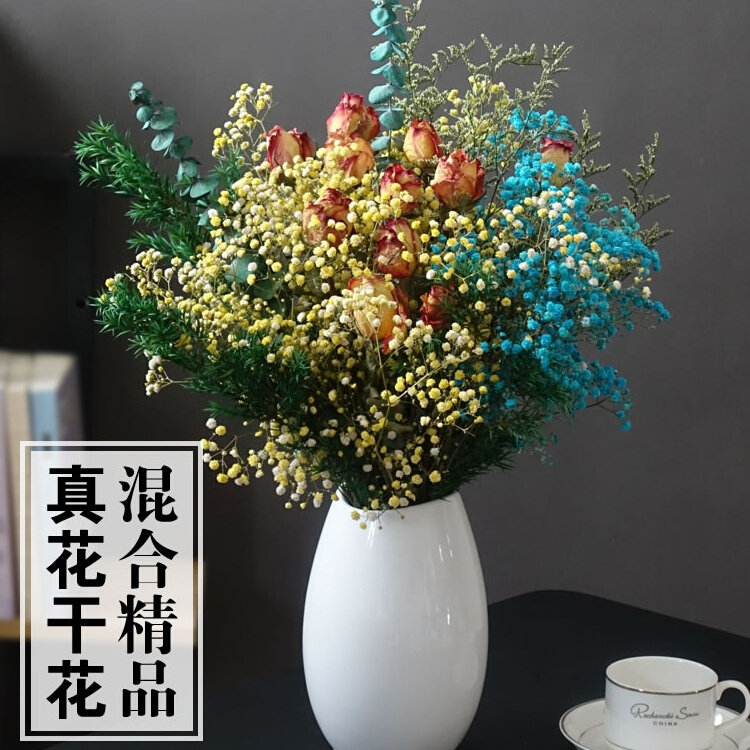 玫瑰满天星干花花束客a厅装饰摆件北欧轻奢摆设真花家t居饰品真花热门设计联盟服务商