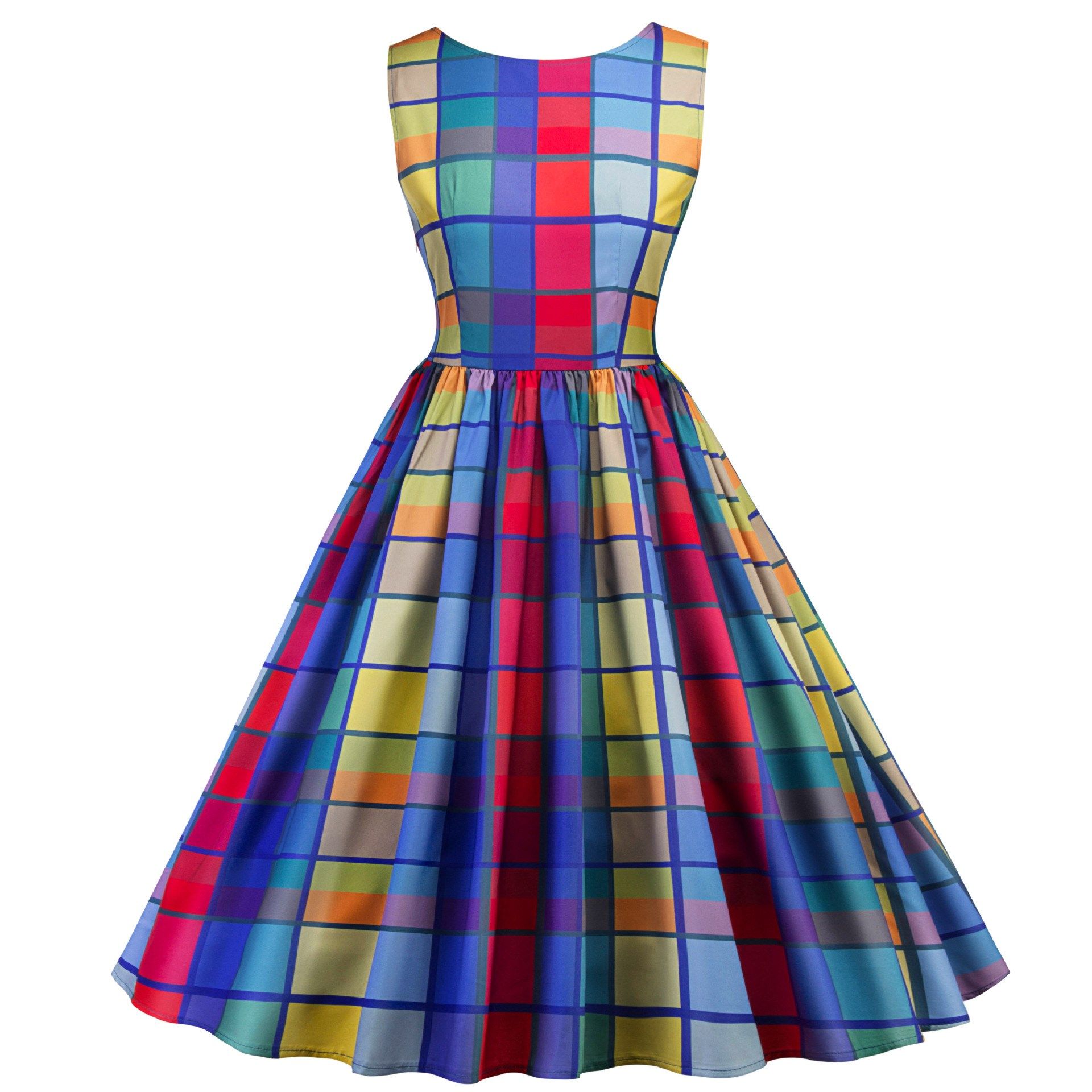 欧美出口款复古赫本风50S收腰大摆格子连衣裙Rockabilly Dress热门设计联盟服务商
