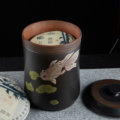 原食生活建水紫陶密封罐11饼400克普洱茶饼罐彩填工艺茶叶醒茶缸热门设计联盟服务商